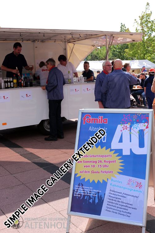 Ab 10 Uhr konnten sich die Besucher bei strahlendem Sonnenschein zwischen den Feuerwehrautos informieren, auf einer Abenteuerhüpfburg springen und bei den Wasserspielen der Jugendfeuerwehr sich als Feuerwehrmann und -frau ausprobieren. Für das leibliche Wohl sorgte famila Altenholz mit einem Grill- und Getränkestand. Für süße Leckereien sorgte der Stand von Steiskal mit Kuchen und frischen Waffeln.